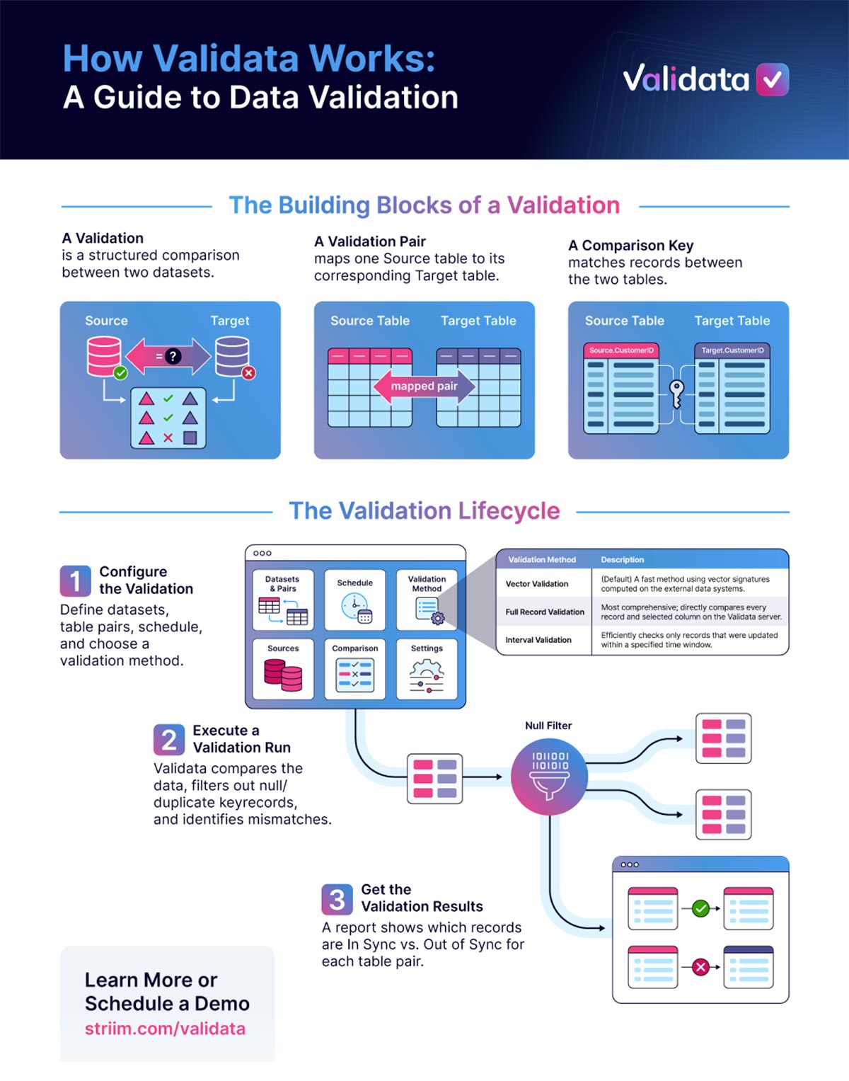 We recently launched Validata, the high-performance data validation platform that verifies consistency between source and target data systems during replication, migrations, analytics operations, and AI workloads.