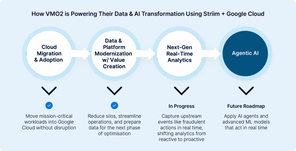 With Striim and Google Cloud, data latency has dropped from hours to seconds, empowering VMO2 teams to make faster operational, marketing, and service decisions.